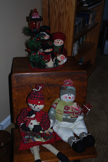 I made a throw with this cute couple on it and that year our dear friends gave us this figurine for Christmas. Loving snowmen as I do, this quickly became a featured decoration.